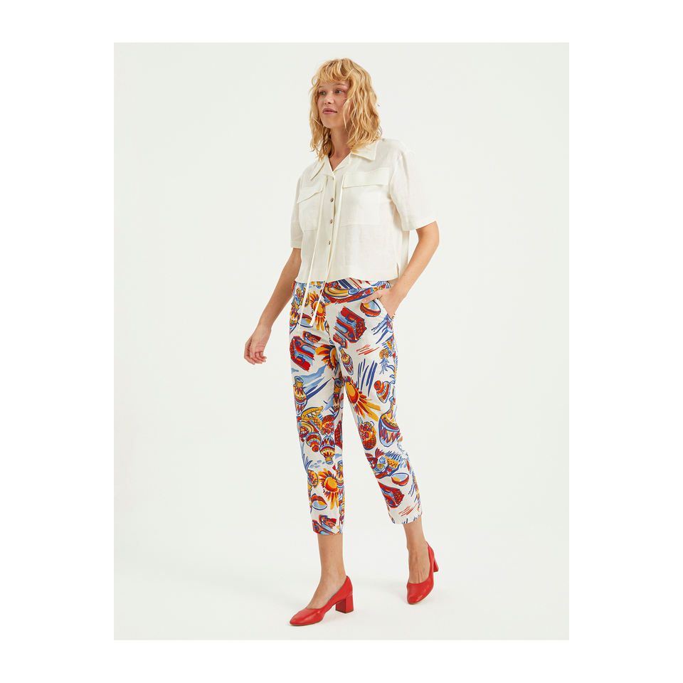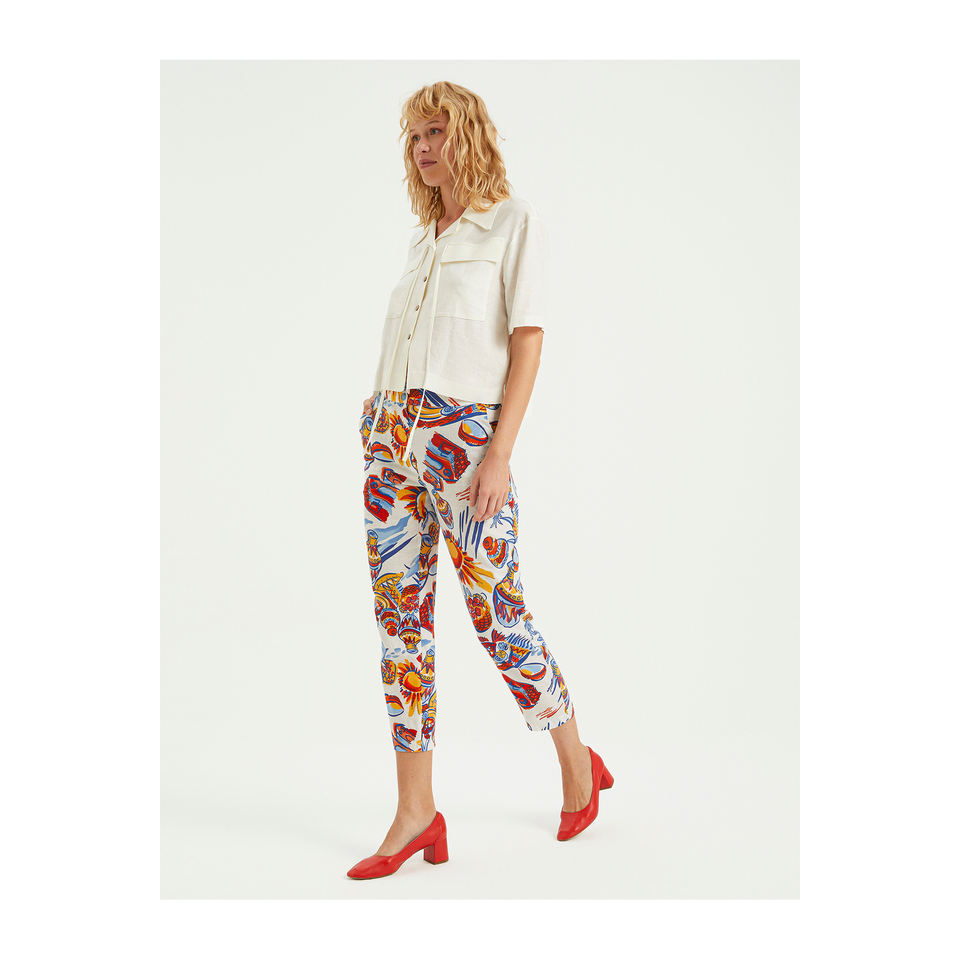 กางเกงและกางเกงขายาวเรียวเล็กพิมพ์ลายวิสคอสของผู้หญิง S23P114ตุรกี