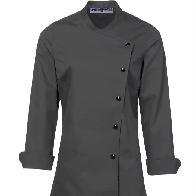 เสื้อเชฟผู้หญิง แขนยาว ผ้าโพลีคอตตอน รับสั่งทำ ปักโลโก้ได้ ชุดยูนิฟอร์มสำหรับร้านอาหาร บาร์ ครัว