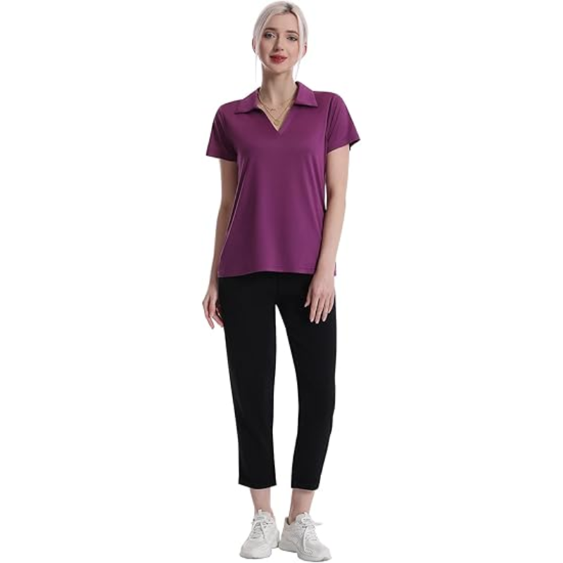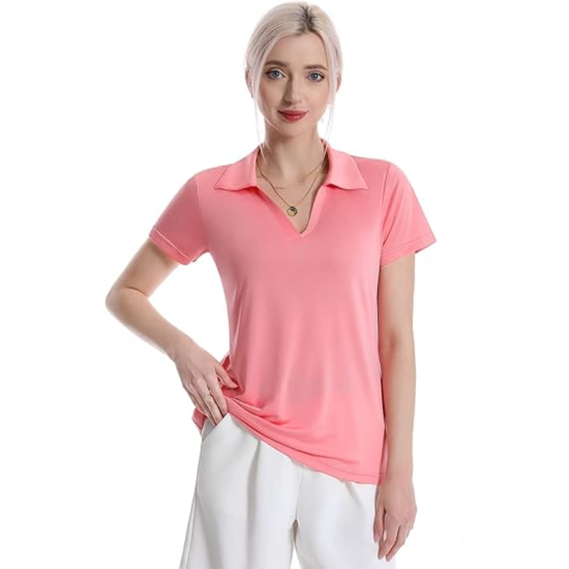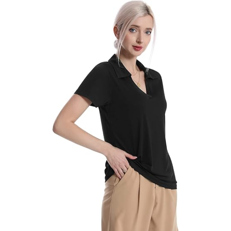 เสื้อโปโลแขนยาวคอวีทรงเข้ารูปสำหรับผู้หญิง สไตล์ลำลองทางธุรกิจ เหมาะสำหรับฤดูใบไม้ร่วง ปี 2025