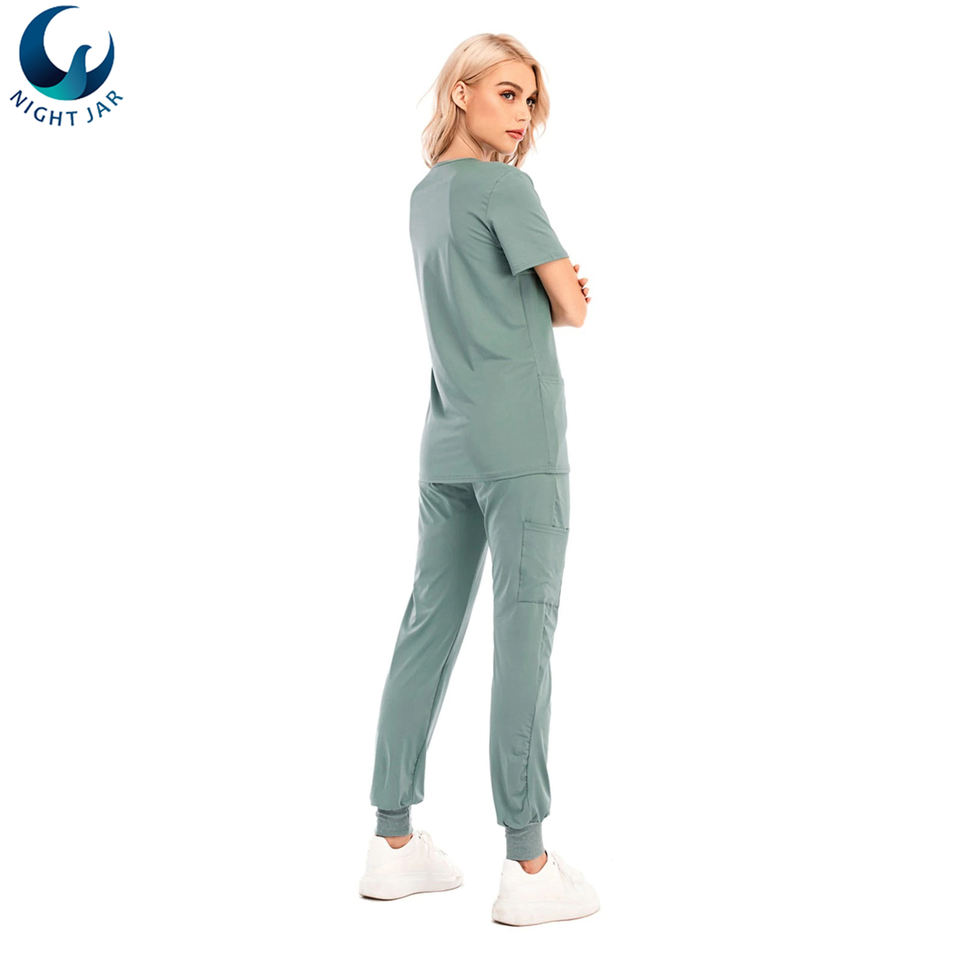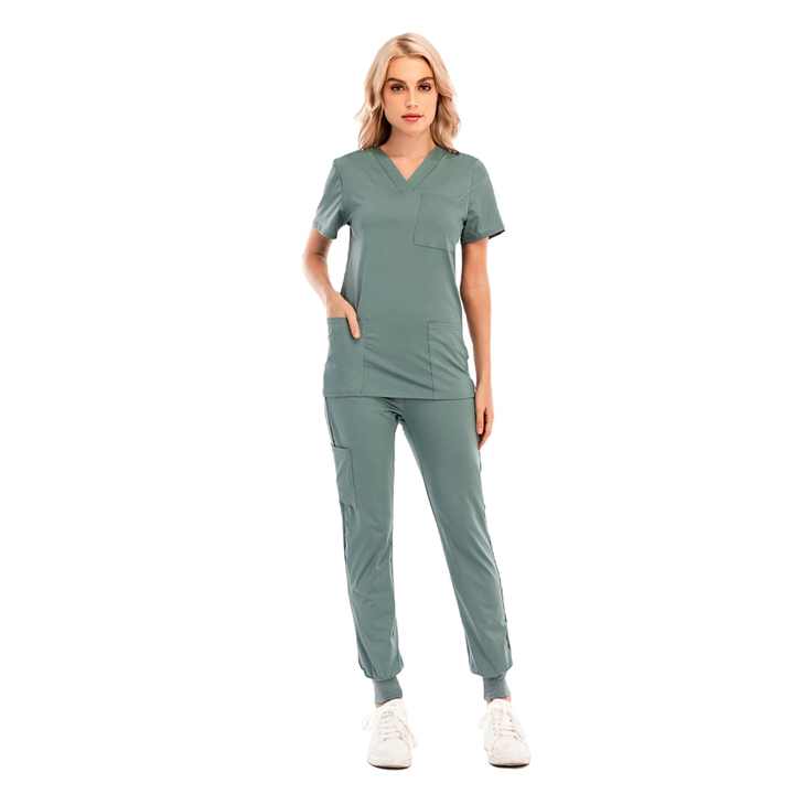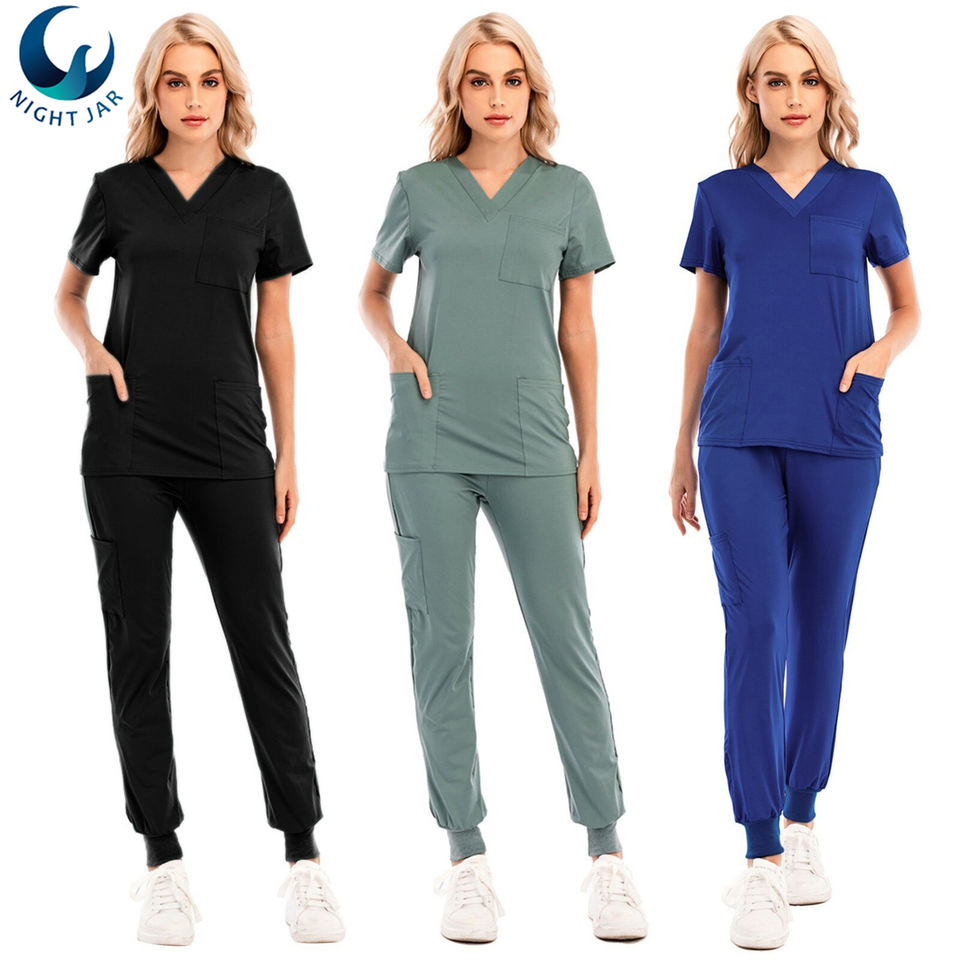 ชุดยูนิฟอร์มพยาบาลแบบยูนิเซ็กซ์ คอวี พร้อมกระเป๋า สีและขนาดตามสั่ง บริการ OEM สำหรับใช้ในโรงพยาบาล