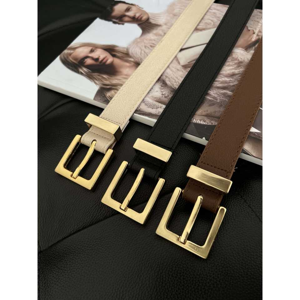 เข็มขัดผู้หญิงแบบ PU พร้อมหัวเข็มขัดโลหะทรงสี่เหลี่ยม สไตล์ลำลอง สีดำ สีเบจ สีน้ำตาล