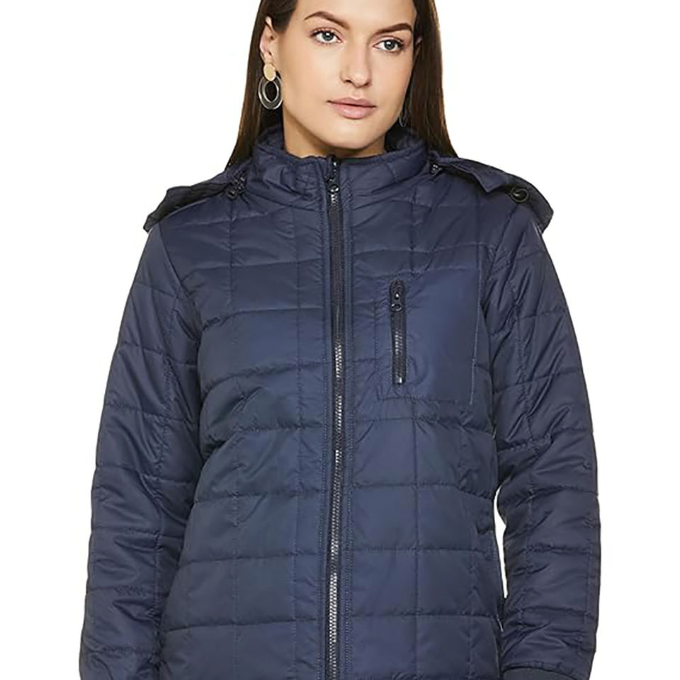 แจ็กเก็ตขนเป็ดสำหรับผู้หญิงมีฮู้ดถอดออกได้มีซิปเต็มขอบและข้อมือเสื้อแจ็กเก็ตฤดูหนาวแบบลำลองตัดขอบ