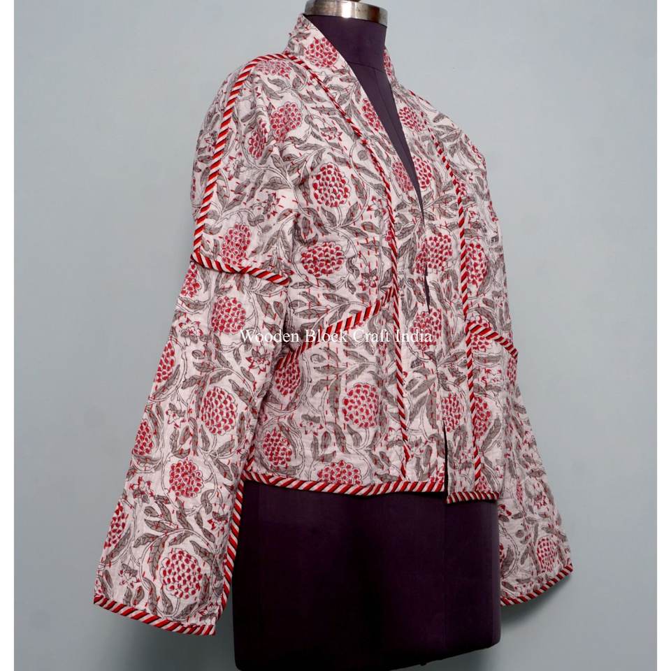 Women's Pure Cotton Kantha Jacket Handmade screen printed floral Autumn Winter Wear Multicolor Ethnic Fashion Printed jacket