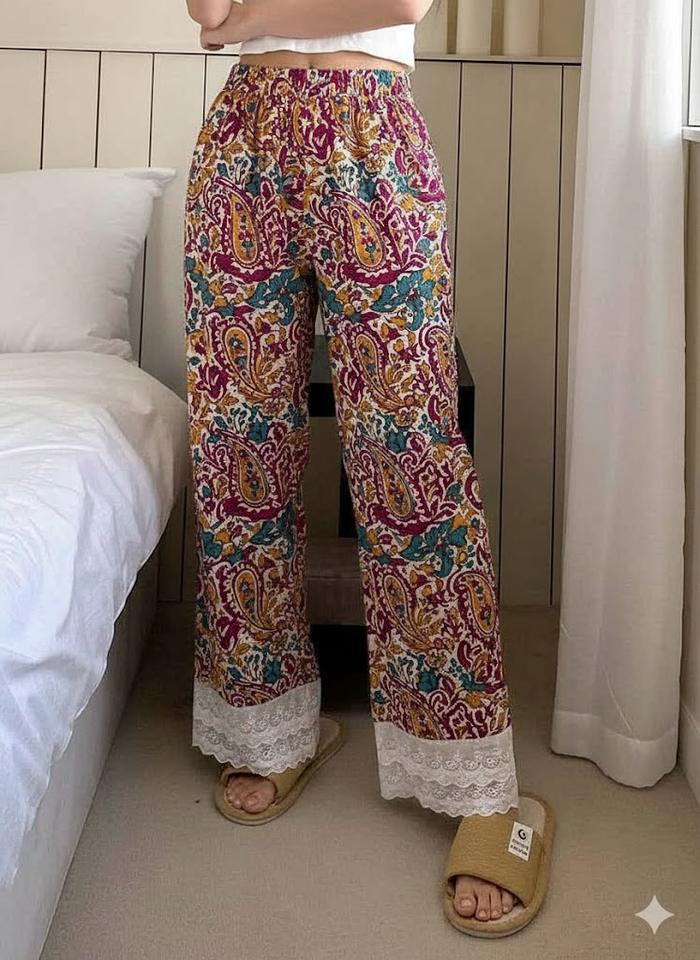 กางเกงผ้าฝ้ายแท้สำหรับผู้หญิง ทรงหลวม สวมใส่สบาย ลายดอกไม้ กางเกงเอวยางยืด สไตล์โบฮีเมียน กางเกงผ้าระบายอากาศได้ดี
