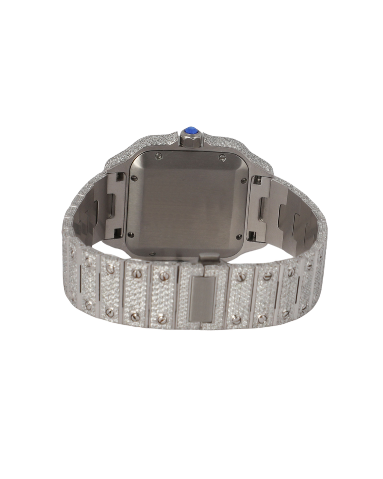 นาฬิกาควอตซ์ผู้หญิง หน้าปัดขาว ประดับเพชร VVS และเพชรโมอิสซาไนต์ CVD สไตล์ฮิปฮอป สายรอนด้า ระบบจักรกล ตัวเรือนทองคำขาว