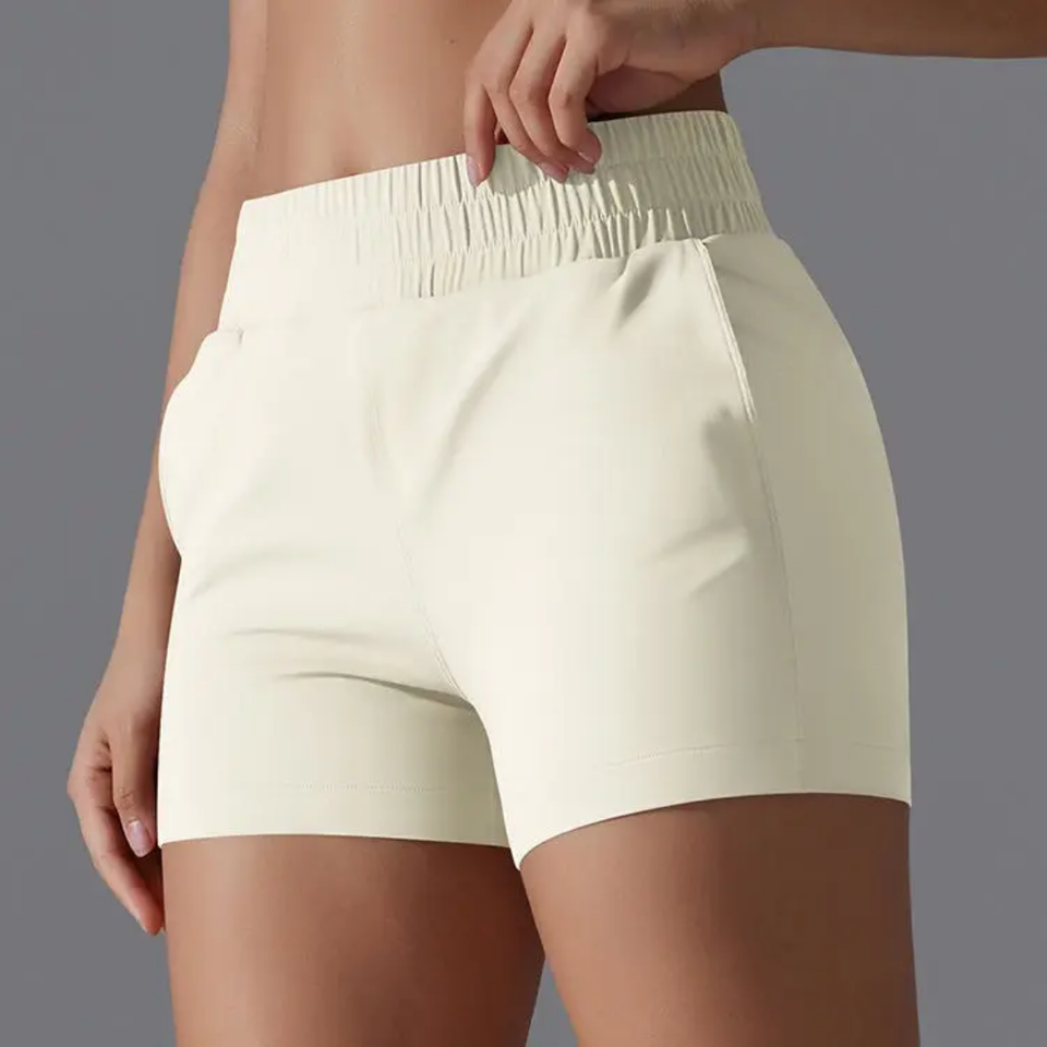 กางเกงกีฬาขาสั้นมีกระเป๋าและซิปแห้งเร็วของผู้หญิงสำหรับใส่วิ่งในยิมกางเกงรัดเอวยางยืดสูงเสื้อผ้ากีฬาสำหรับผู้ชายสำหรับฤดูร้อน