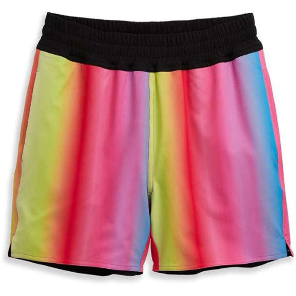 กางเกงขาสั้นกีฬาผู้หญิงสีรุ้งไล่เฉดสี ระบายอากาศ แห้งเร็ว เป็นมิตรกับสิ่งแวดล้อม เอวยางยืด เหมาะสำหรับออกกำลังกาย วิ่ง และกิจกรรมฤดูร้อน