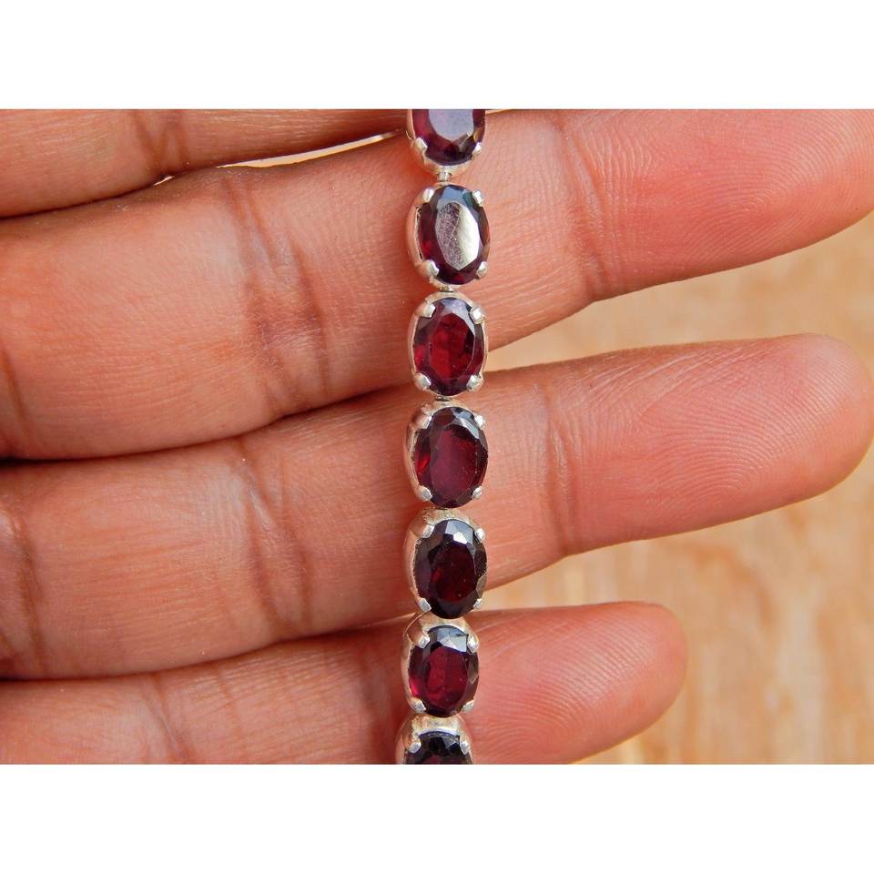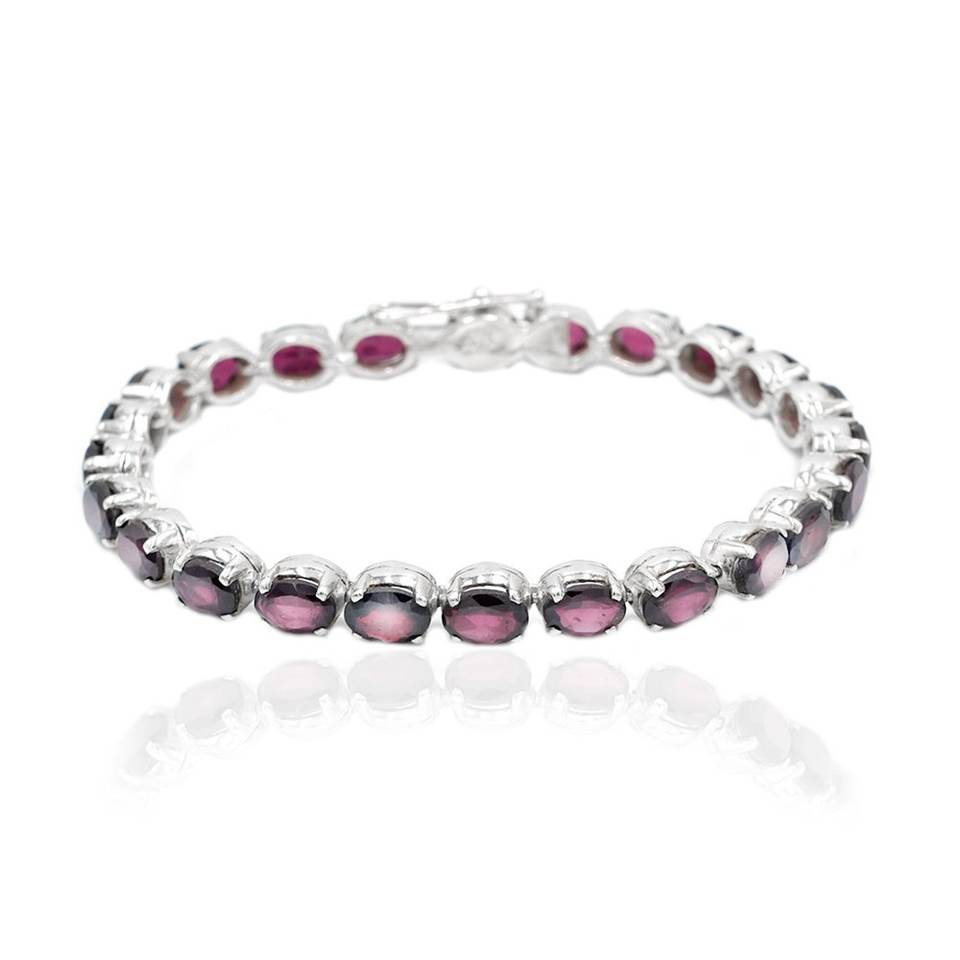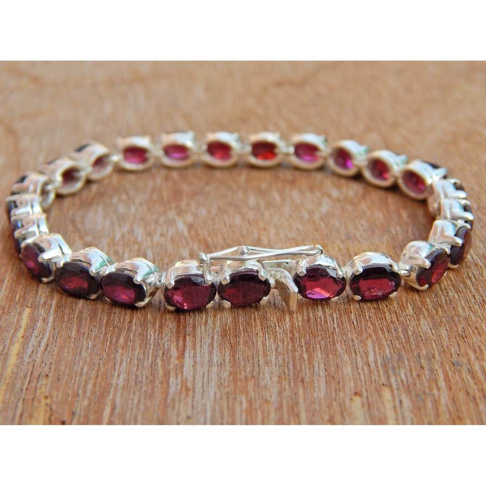 สร้อยข้อมือโกเมนสีแดงที่หายากของผู้หญิงสร้อยข้อมือเทนนิสเงิน925ที่มีคุณภาพดี