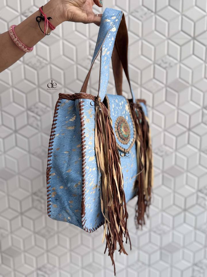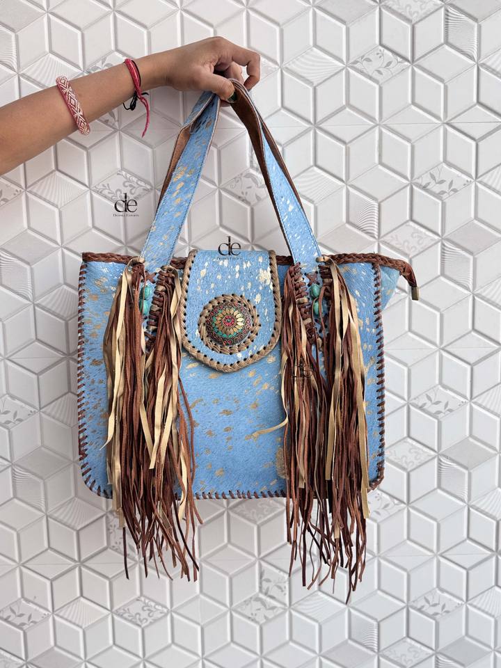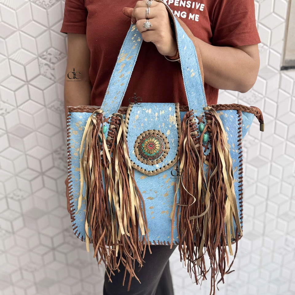 กระเป๋าถือสตรีหนังแท้ที่ทำจากขนสัตว์โลหะแท้มีสไตล์กระเป๋าสตางค์ผมแบบโบฮีเมียน