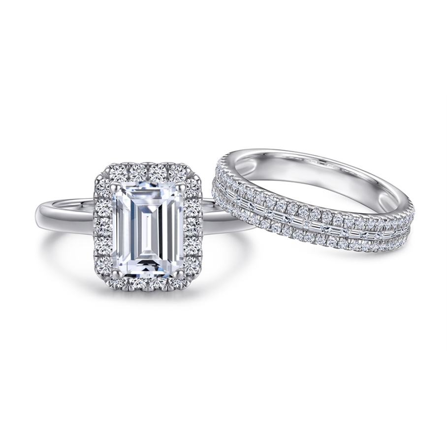แหวนเงินแท้ทรงสี่เหลี่ยมประดับเพชรซิคอนสองแถวชุบโรเดียม ดีไซน์คลาสสิก เหมาะสำหรับเป็นของขวัญแต่งงาน หมั้น หรือวันครบรอบ