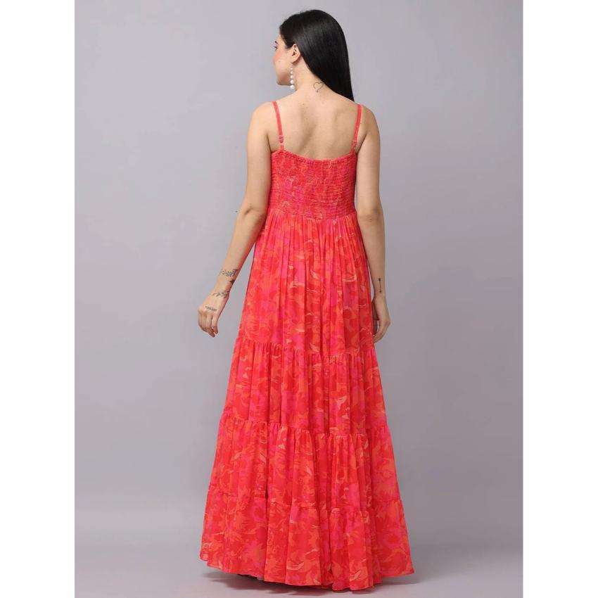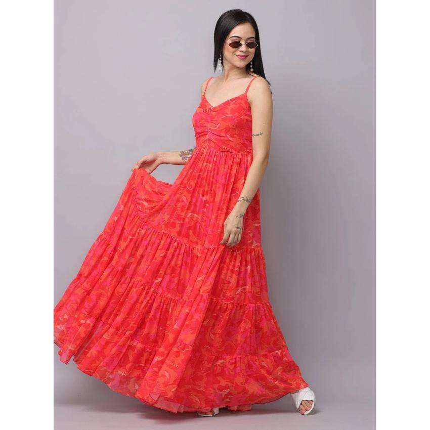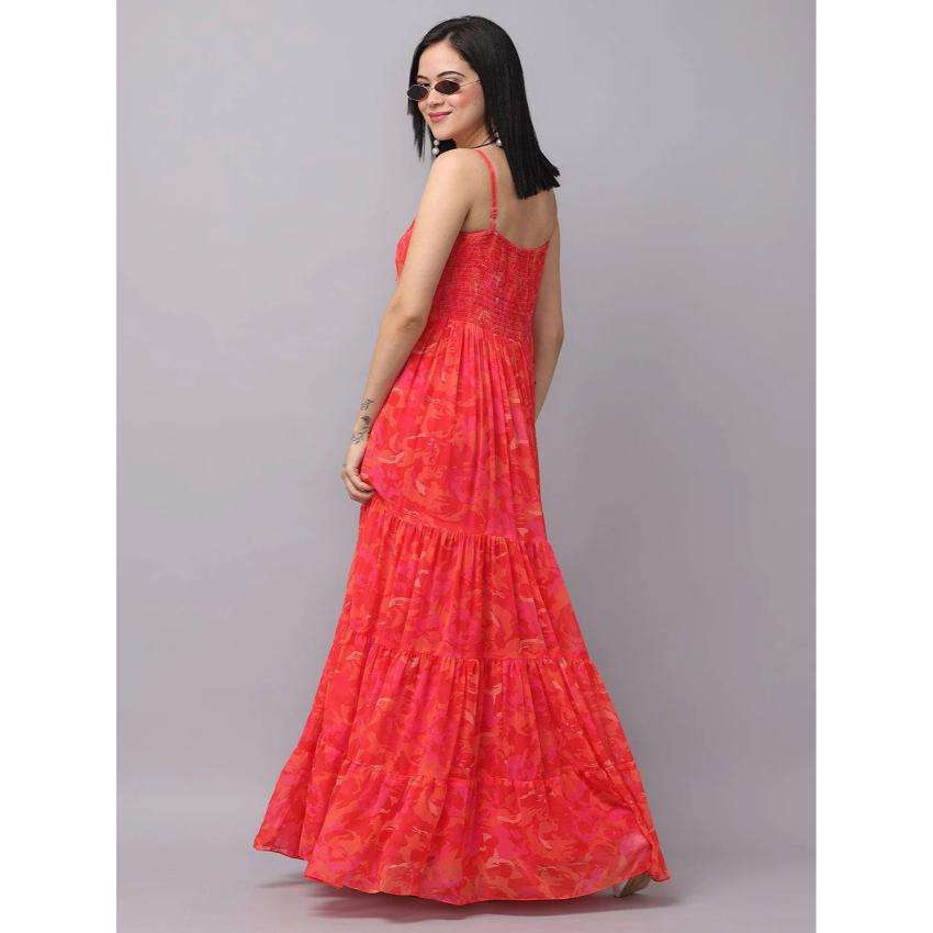 เดรสยาวพิมพ์ลายดอกไม้สีแดงสำหรับผู้หญิง เอวธรรมชาติ สายเดี่ยว ผ้าฝ้าย 100% เหมาะสำหรับงานปาร์ตี้ฤดูร้อน สไตล์ลำลอง