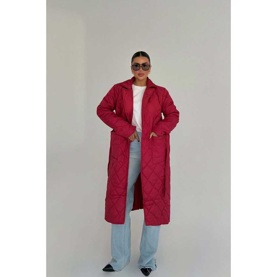เสื้อโค้ทผ้าควิลท์สีแดงสำหรับผู้หญิง