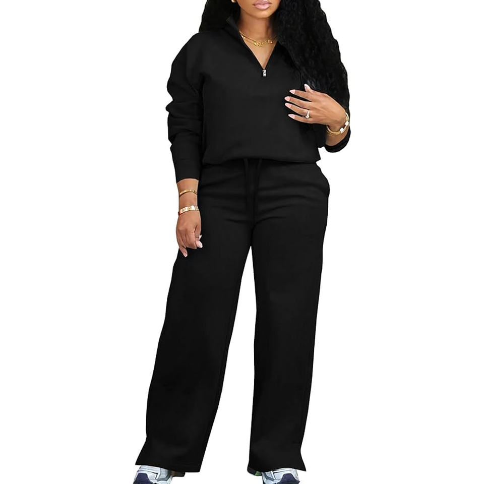 ชุดวอร์มผ้าโพลีเอสเตอร์แบบปกติของผู้หญิงมีกระเป๋าด้านข้างลายแบบถักสำหรับฤดูใบไม้ผลิ/ฤดูร้อน