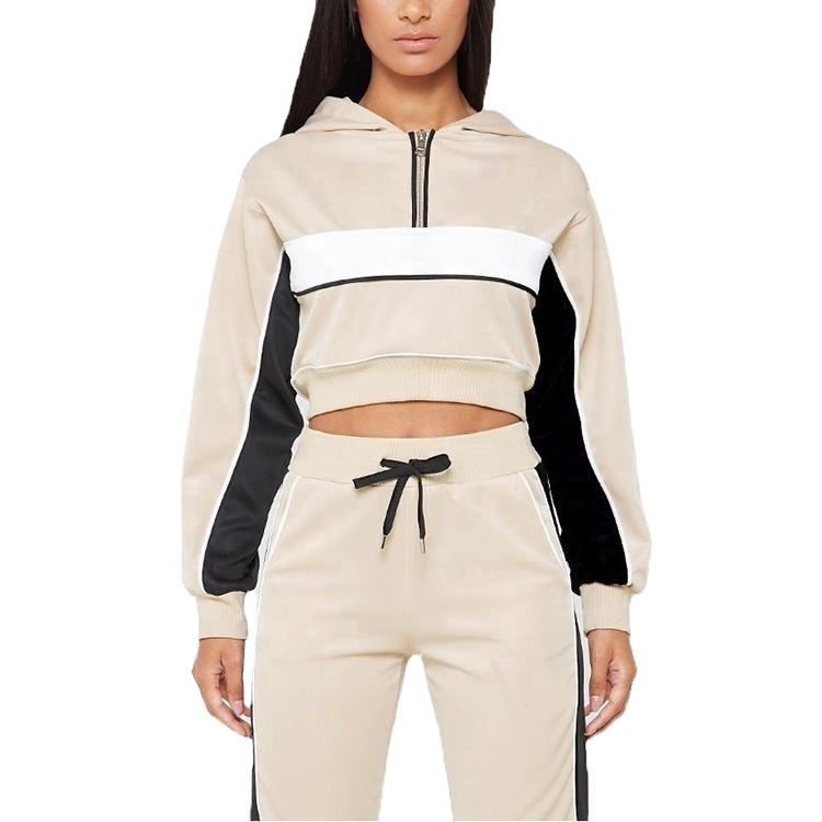 ชุดเซ็ตเสื้อครอปและกางเกงจ็อกเกอร์ทรงปกติสำหรับผู้หญิง ผ้าเนื้อหนาสำหรับฤดูหนาว พร้อมโลโก้แบบกำหนดเอง เสื้อฮู้ดมีซิปและกางเกงขาสั้น ชุดวอร์มพิมพ์ลาย ปี 2026