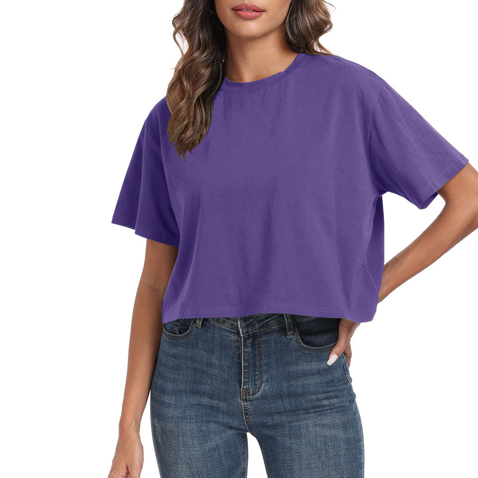 เสื้อครอปทรงบ็อกซี่สำหรับผู้หญิง สวมใส่สบาย ทรงโอเวอร์ไซส์ แขนสั้น เหมาะกับกางเกงยีนส์เอวสูง