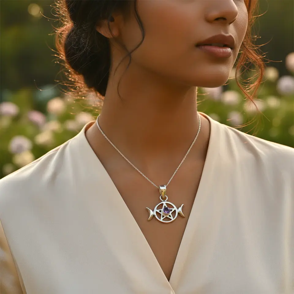 เครื่องประดับทางศาสนาสำหรับผู้หญิง จี้รูปปลาเงินแท้ 925 ประดับพลอยอะมีทิสต์ ชุบโรเดียม ลายหยดน้ำ ประดับมุกสีทอง