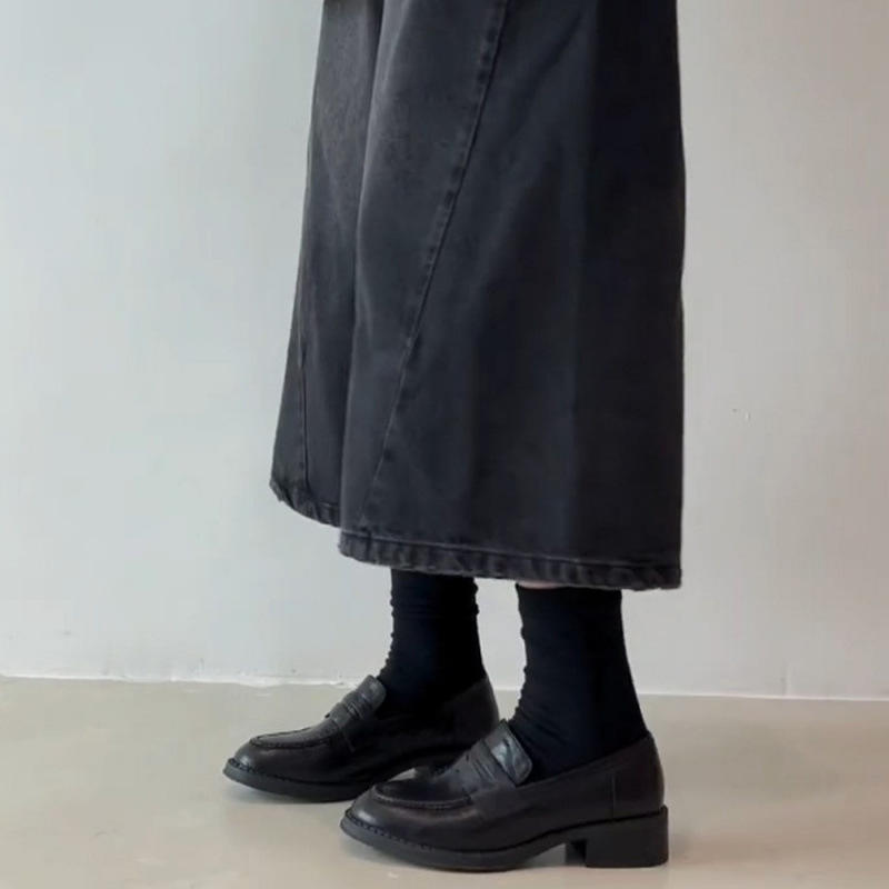 รองเท้าหนังส้นหนาสไตล์อังกฤษย้อนยุคสำหรับผู้หญิง รองเท้าทำงานหัวมน ส้นกลางอเนกประสงค์ รองเท้าส้นสูงสำหรับทำงาน