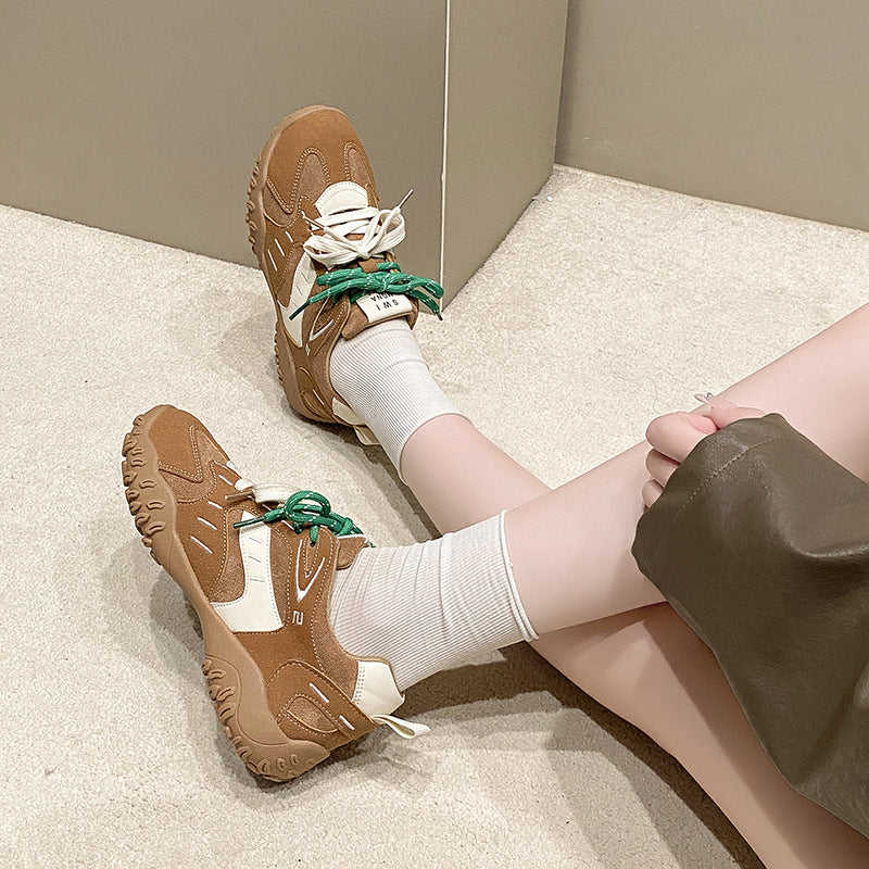 รองเท้าผ้าใบเพิ่มความสูงแบบซ่อนสำหรับผู้หญิง สไตล์เรโทร แฟชั่นใหม่ปี 2025 รองเท้าลำลองพื้นหนาเพิ่มความสูง
