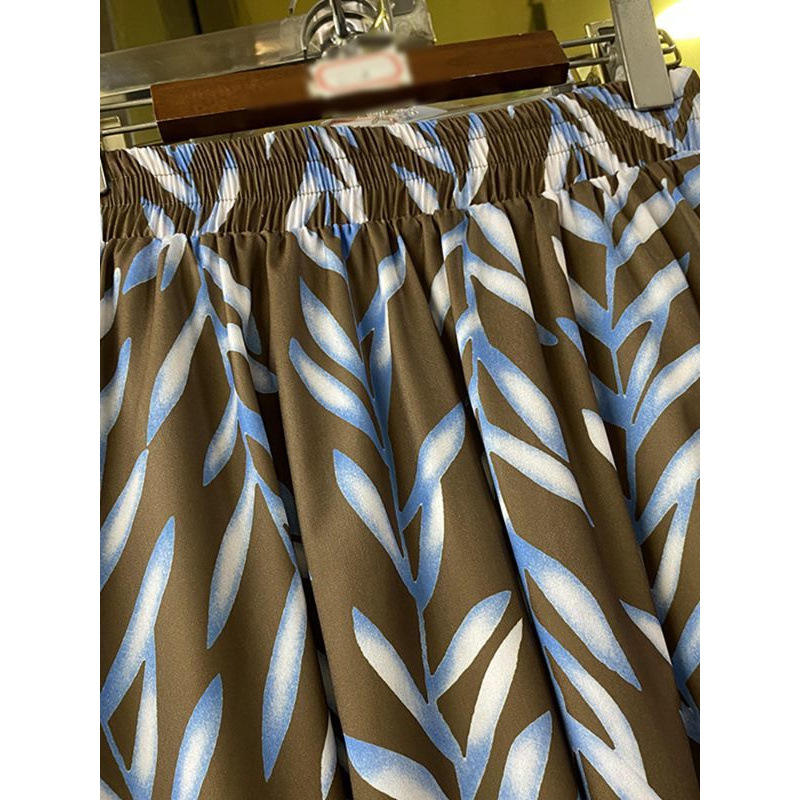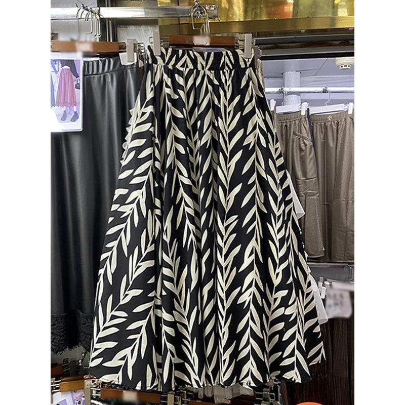 กระโปรงทรงเอพิมพ์ลายแนวย้อนยุคสำหรับผู้หญิงเอวสูงเข้ารูปชายเสื้อขนาดใหญ่สไตล์ลำลองลดอายุสำหรับฤดูใบไม้ร่วง