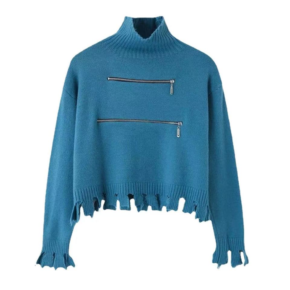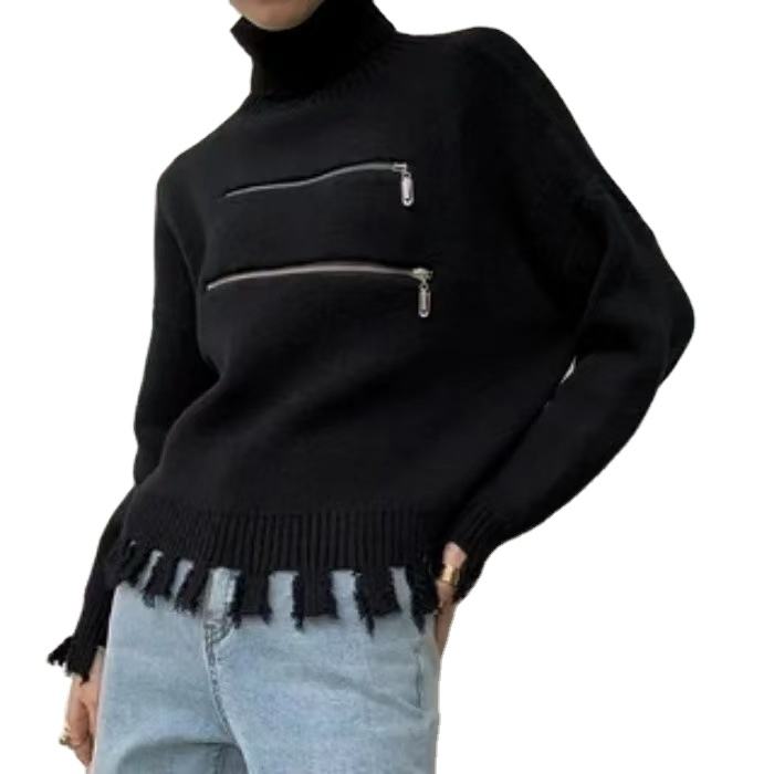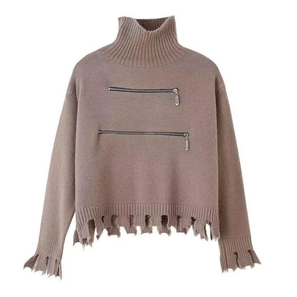 เสื้อสเวตเตอร์แคชเมียร์ลำลองสีทึบสไตล์ย้อนยุคของผู้หญิงเสื้อคอตตอน100% คอตตอนเสื้อถักซิปคู่ทันสมัย