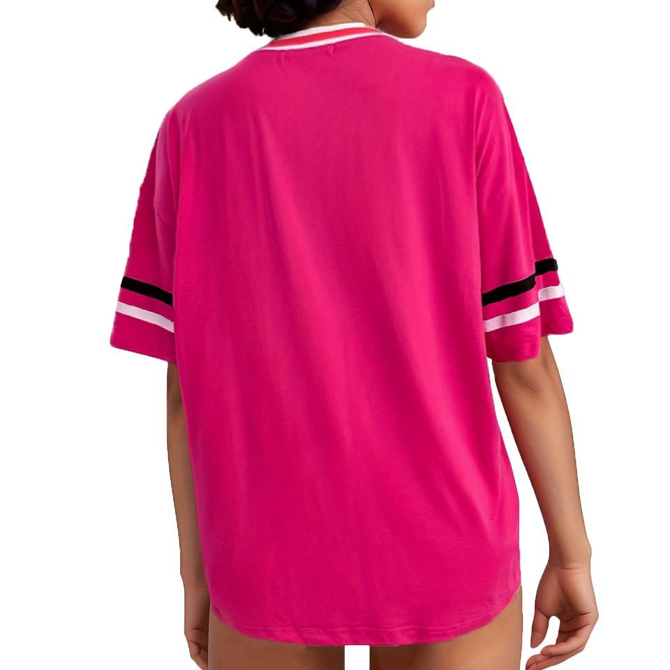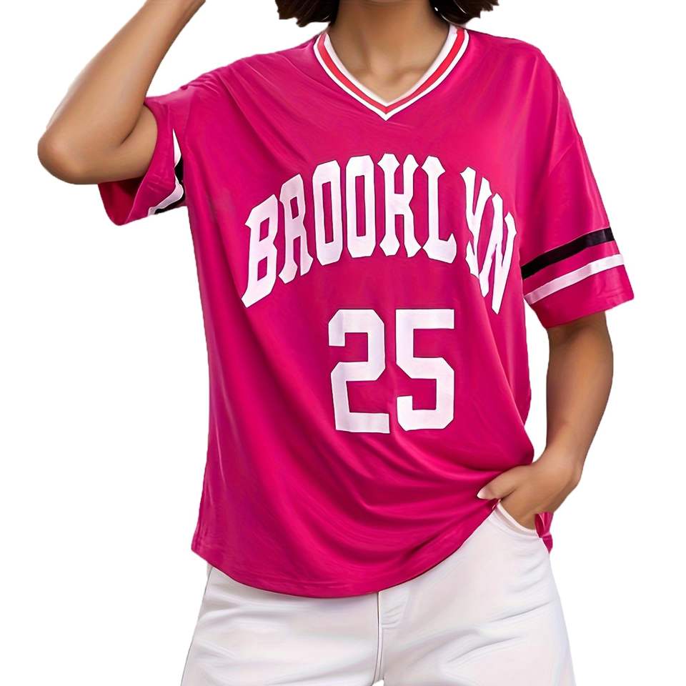 เสื้อฟุตบอลคอวีแนวย้อนยุคของผู้หญิงเสื้อยืดพิมพ์ลายแบบตาข่ายธรรมดาทรงหลวมขนาดใหญ่