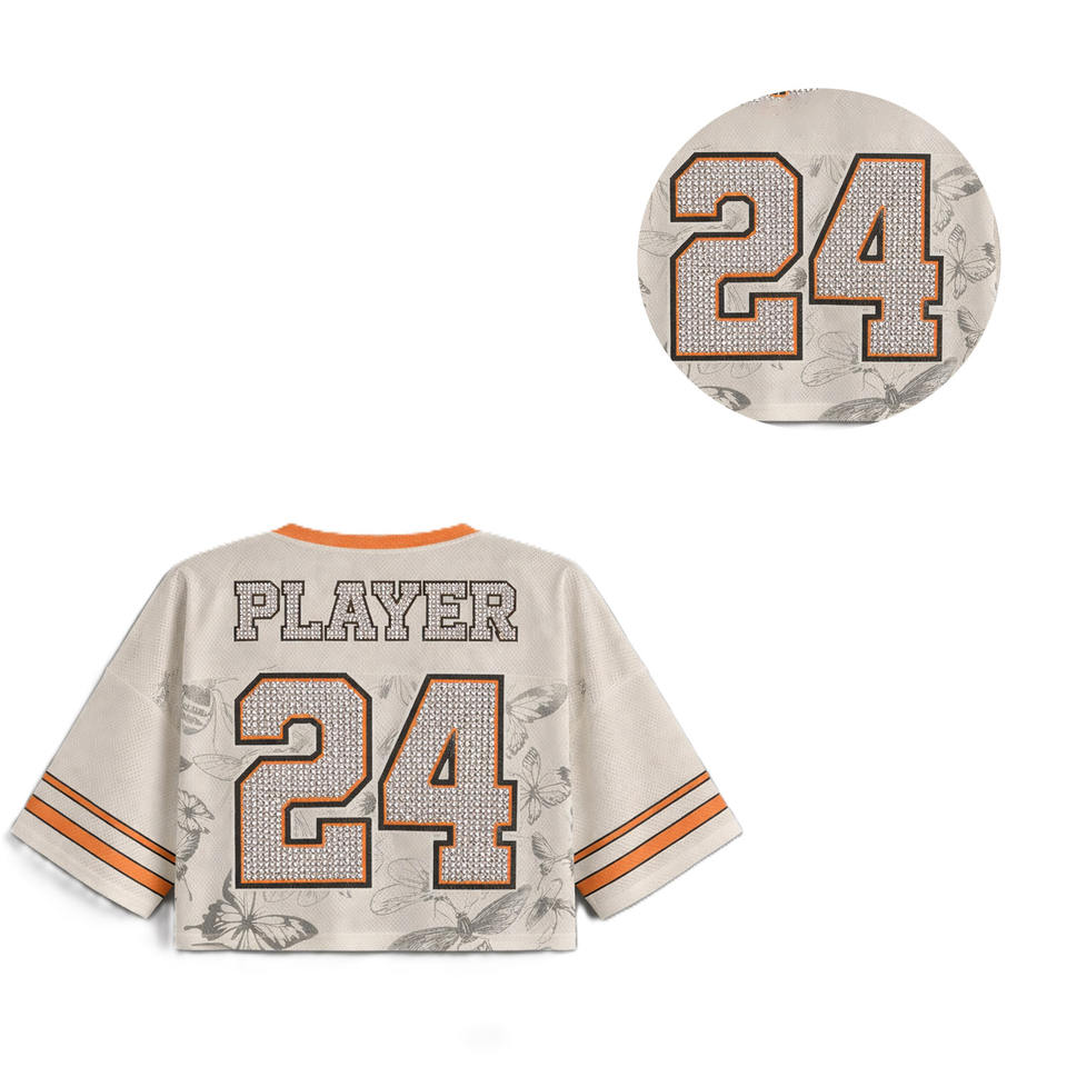 Women's Rhinestone American Football Jersey Cropped Mesh V Neck Streetwear Top Breathable Polyester OEM Custom Supply
