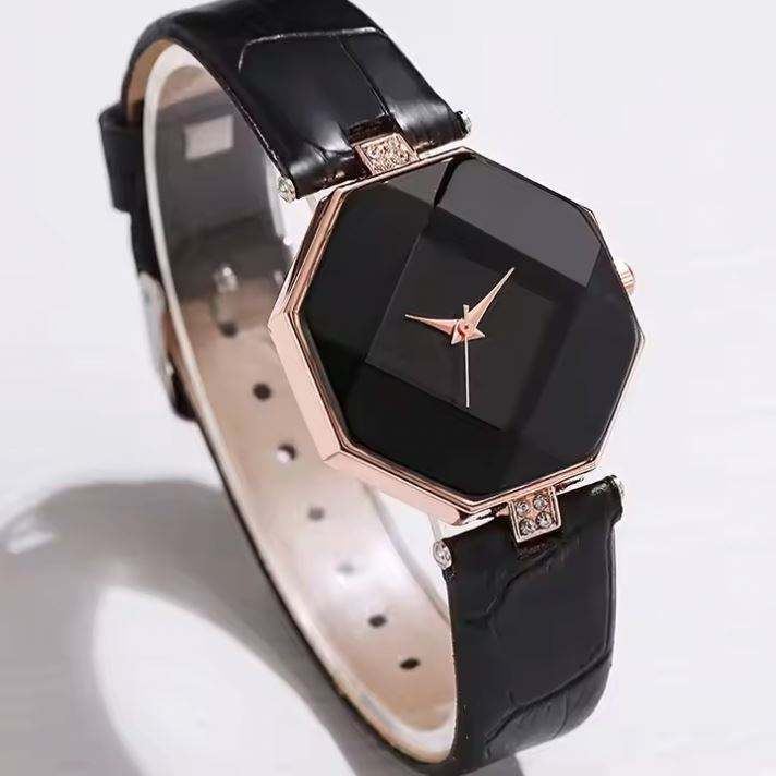 นาฬิกาควอทซ์หน้าปัดดอกไม้แบบเรียบง่ายแฟชั่นฝังพลอยเทียมสำหรับผู้หญิง