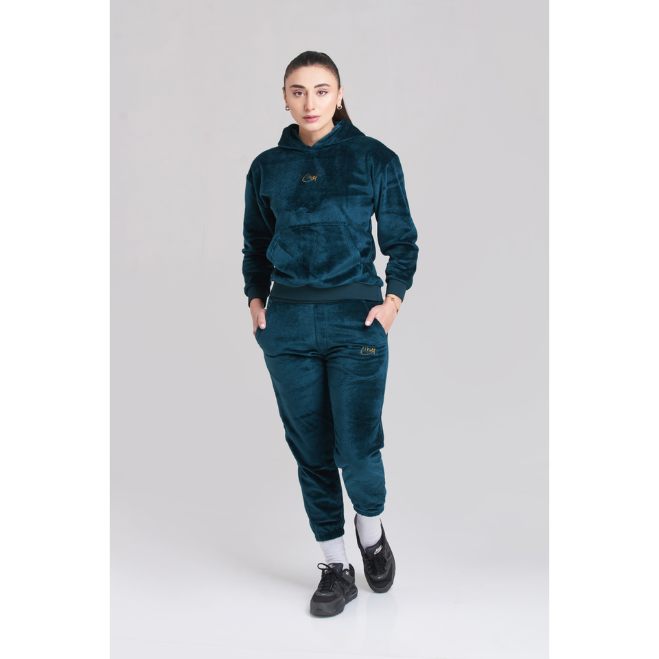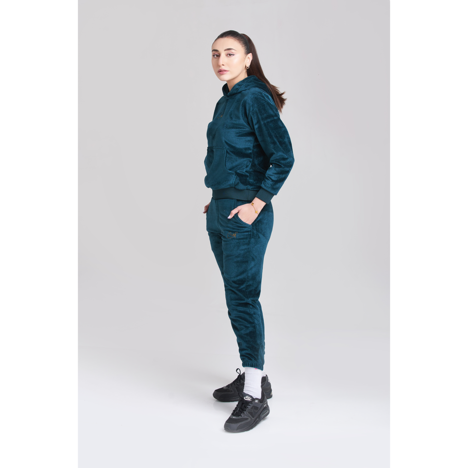 ชุดวอร์มมีฮู้ดสำหรับผู้หญิงผ้ากำมะหยี่หัวหน้าซี่โครง