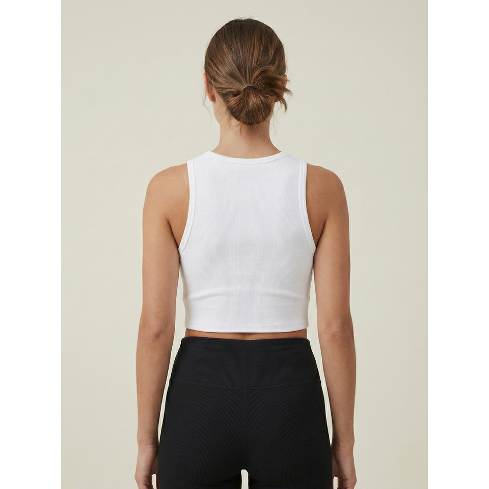 เสื้อครอปแขนกุดผ้าริบเนื้อนุ่มยืดหยุ่นสำหรับผู้หญิง สไตล์ลำลองใส่ได้ทั้งกลางวันและกลางคืน ดีไซน์อินเดีย