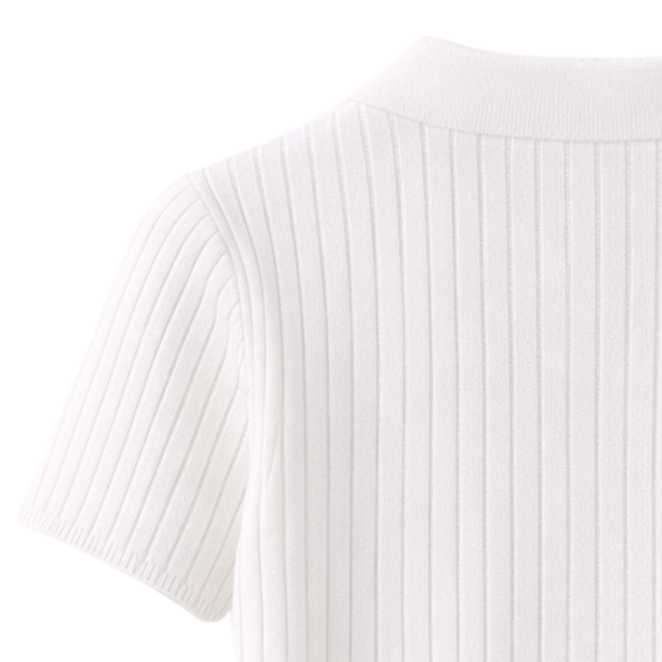 เสื้อคาร์ดิแกนผู้หญิง แขนสั้น คอปก กระดุมหน้า ผ้าถักลายริบ ทรงเข้ารูป สไตล์ลำลอง สำหรับฤดูใบไม้ร่วง ผ้าไม่ยับ ดีไซน์หรูหรา