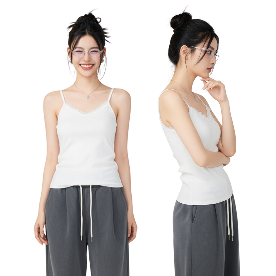 เสื้อกล้ามสายเดี่ยวผ้าริบถักสำหรับผู้หญิง แต่งขอบลูกไม้ระบายหวานๆ สไตล์เรียบหรู ผ้าฝ้าย ใส่สบายๆ สำหรับฤดูร้อน ขายส่ง