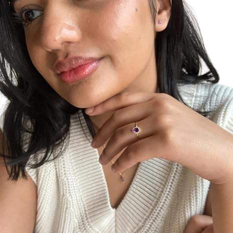 แหวนสตรีพลอยอเมทิสต์ธรรมชาติและพลอย CZ หินก้อนเล็กๆสำหรับวันเกิดเทศกาลคริสต์มาสทำด้วยมือเครื่องประดับแหวนเงินสเตอร์ลิง925