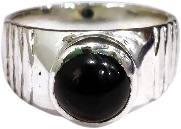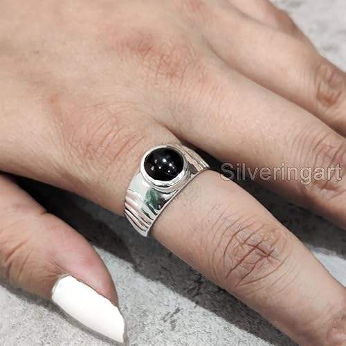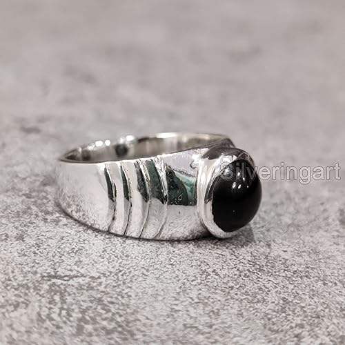 แหวนผู้หญิง หินออนิกซ์สีดำธรรมชาติ หินประจำเดือนธันวาคม ของขวัญคริสต์มาส เครื่องประดับทำมือสไตล์โบฮีเมียน แหวนเงินแท้ 925