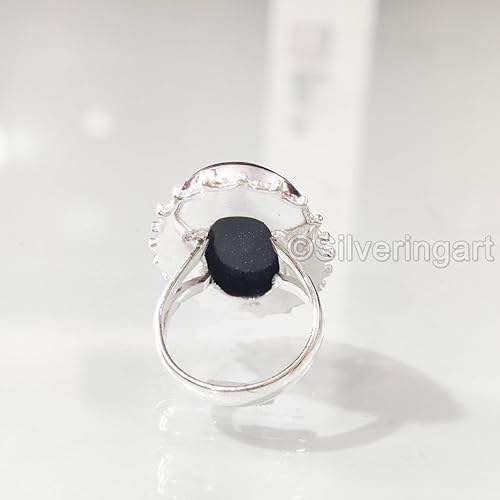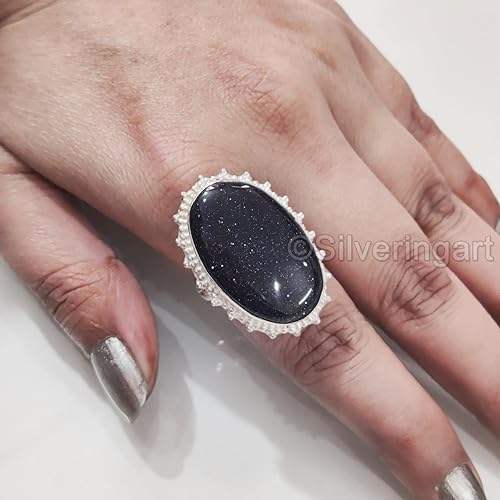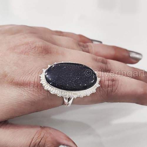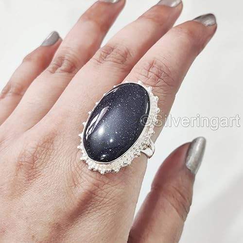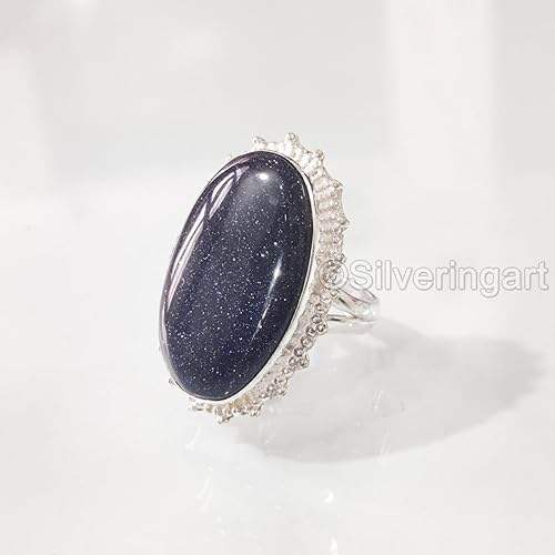 แหวนผู้หญิงพลอยบลูซันสโตนแท้ แหวนหินประจำเดือนเกิด สไตล์โบฮีเมียน แหวนทำมือสำหรับคริสต์มาส เครื่องประดับเงินแท้ 925
