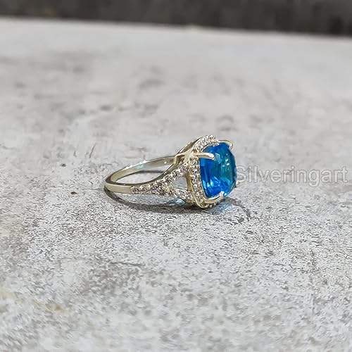 แหวนผู้หญิงพลอยบลูโทแพซธรรมชาติ หินประจำเดือนพฤศจิกายน แหวนวันครบรอบ แหวนเล็กแบบซ้อนได้ เครื่องประดับแหวนเงินแท้ 925