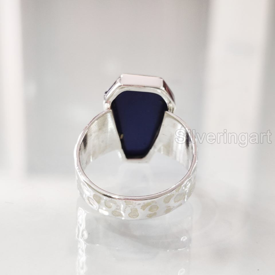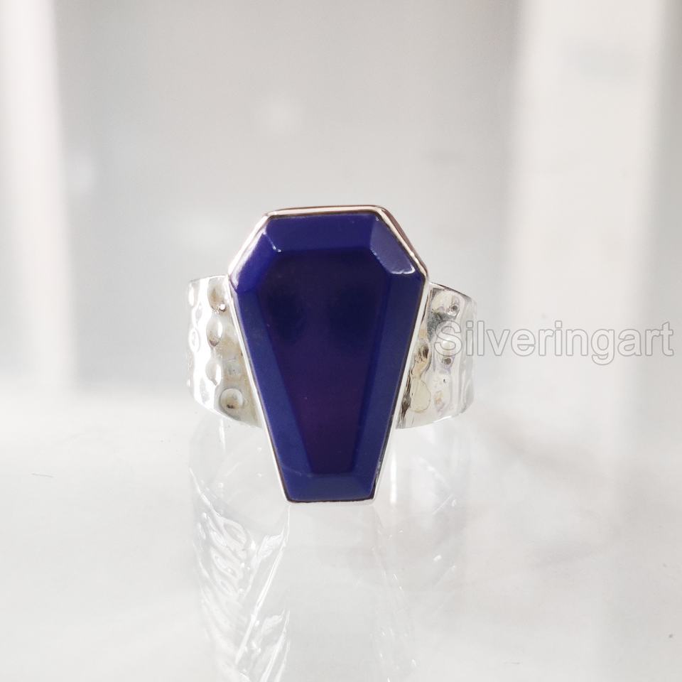 แหวนสำหรับผู้หญิงโลงศพธรรมชาติ Lapis Lazuli พลอย September birthstone unisex 925แหวนเงินสเตอริง