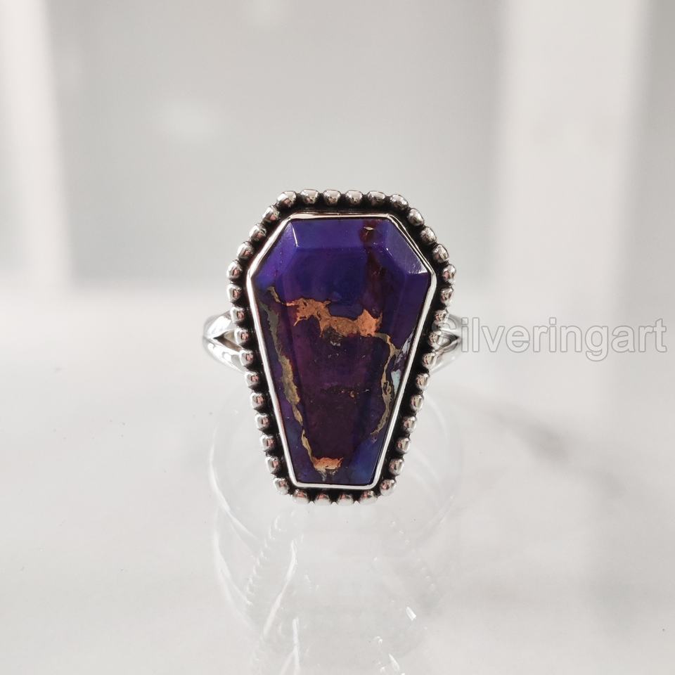แหวนผู้หญิง แหวนเงินแท้ 925 ประดับพลอยเทอร์ควอยซ์สีม่วงธรรมชาติ รูปทรงโลงศพ ของขวัญวันเกิดเดือนธันวาคม ของขวัญวันครบรอบ ของขวัญสำหรับงานปาร์ตี้