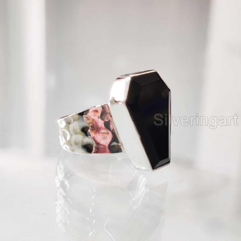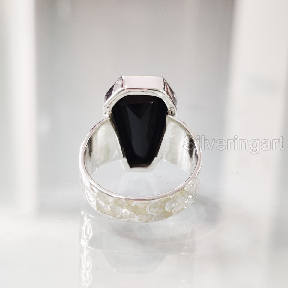 แหวนโลงหินธรรมชาติสำหรับผู้หญิงพลอยโอนิกซ์สีดำ December birthstone คริสต์มาสค้อนแหวนโลงศพ925แหวนเงินสเตอร์ลิง