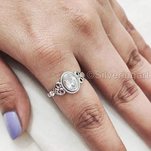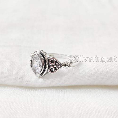 แหวนเงินแท้ 925 ประดับพลอยคิวบิกเซอร์โคเนียธรรมชาติ สำหรับผู้หญิง หินประจำเดือนเมษายน สไตล์โบฮีเมียน งานแฮนด์เมด เหมาะสำหรับเป็นของขวัญคริสต์มาส