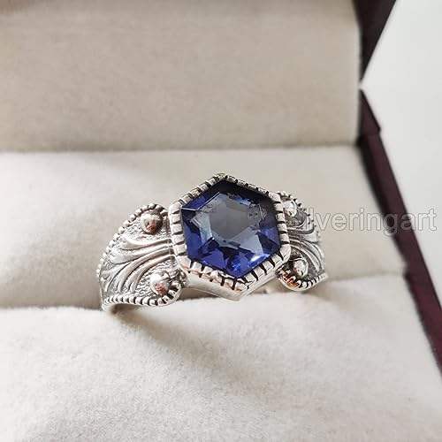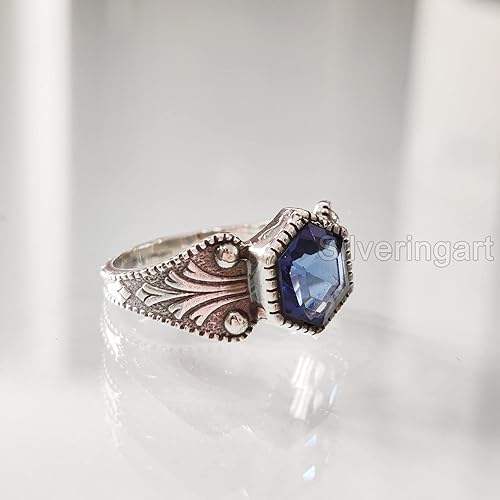 แหวนผู้หญิงพลอยไพลินสีน้ำเงินธรรมชาติ หินประจำเดือนกันยายน แหวนซ้อนกันได้ ของขวัญคริสต์มาส เครื่องประดับแหวนเงินแท้ 925