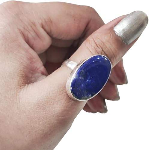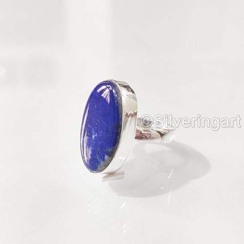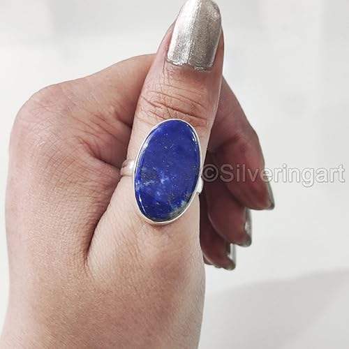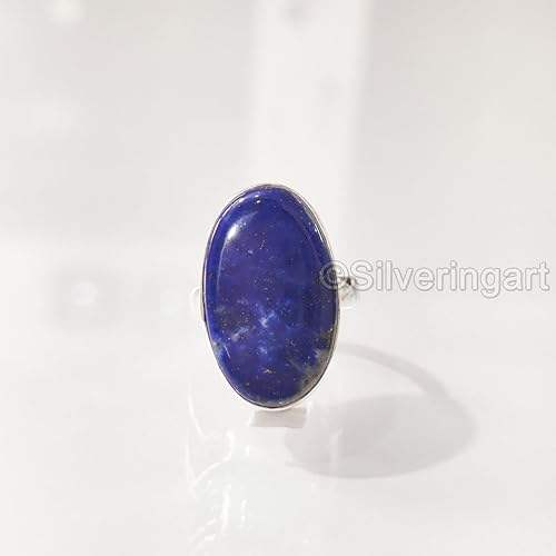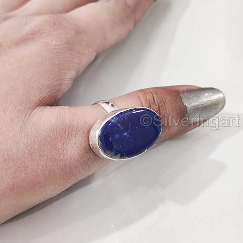 แหวนผู้หญิงพลอยลาพิสลาซูลีแท้ หินประจำเดือนเกิด แหวนดีไซน์เนอร์ขนาดใหญ่ งานแฮนด์เมด เครื่องประดับเงินแท้ 925