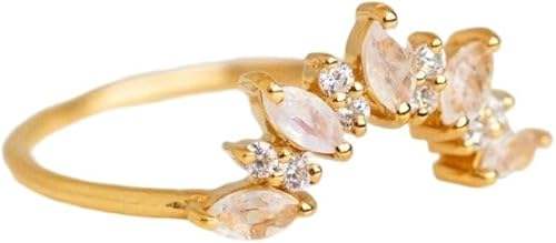 Women's Ring Natural Rainbow Moonstone CZ Gemstone June Birthstone Christmas Tiny Handmade Jewelry 925 Sterling Silver Ring