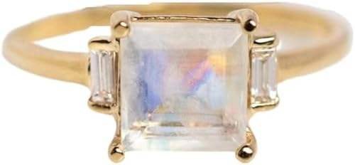 แหวนสตรีสีรุ้งธรรมชาติมูนสโตนพลอยสังเคราะห์พลอยราศีเมถุนอัญมณีงานแต่งทำมือเครื่องประดับ925แหวนเงินสเตอร์ลิง