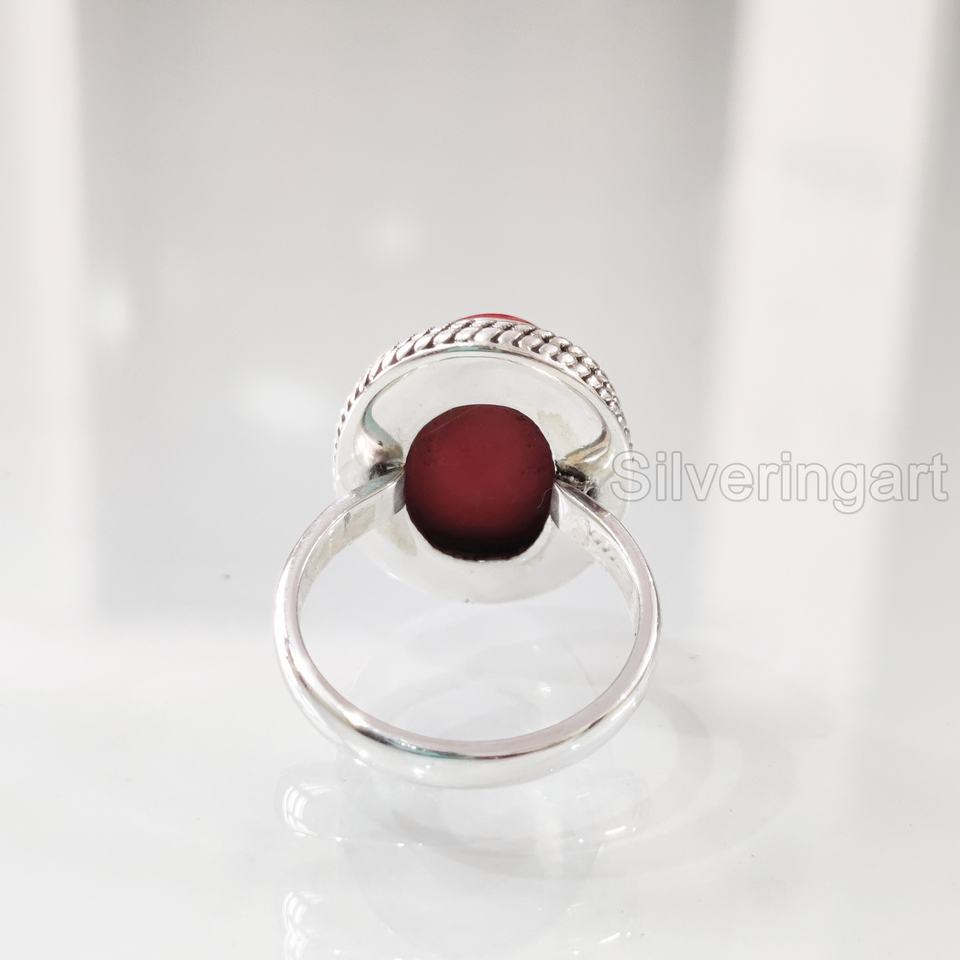 แหวนสตรีแหวนพลอยปะการังสีแดงธรรมชาติแหวนพลอย april birthstone แบบเรียบง่ายเครื่องประดับคริสต์มาสทำด้วยมือแหวนเงินสเตอร์ลิง925