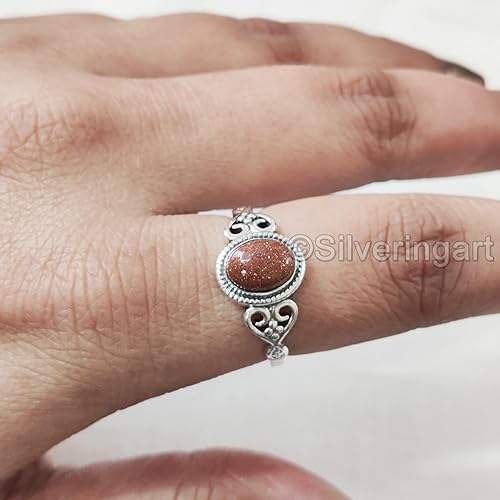 แหวนผู้หญิงพลอยซันสโตนธรรมชาติ แหวนดีไซน์เนอร์สไตล์โบฮีเมียนขนาดเล็ก ของขวัญคริสต์มาส เครื่องประดับทำมือ แหวนเงินแท้ 925