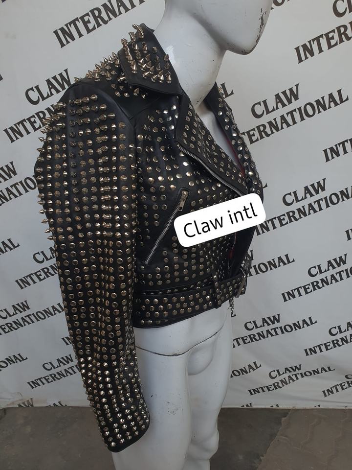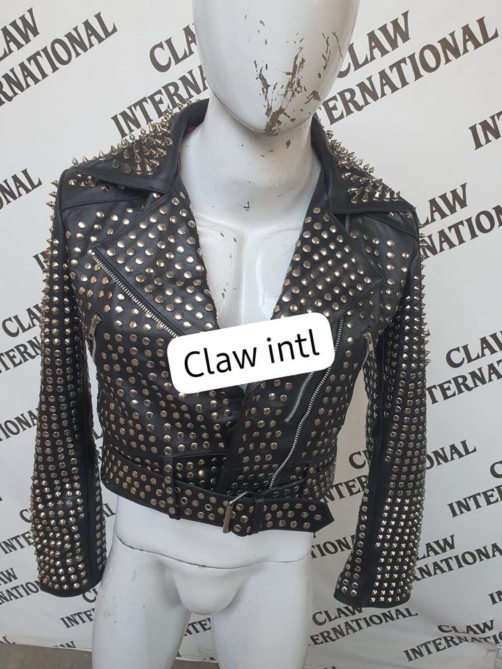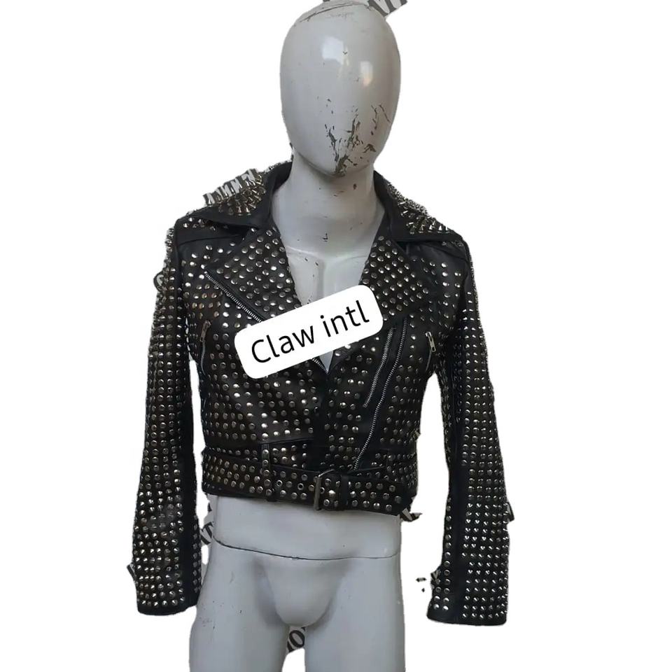 แจ็กเก็ตตอกหมุดสำหรับผู้หญิงแจ็คเก็ตขี่มอเตอร์ไซค์หนังสั้นแขนยาวใหม่