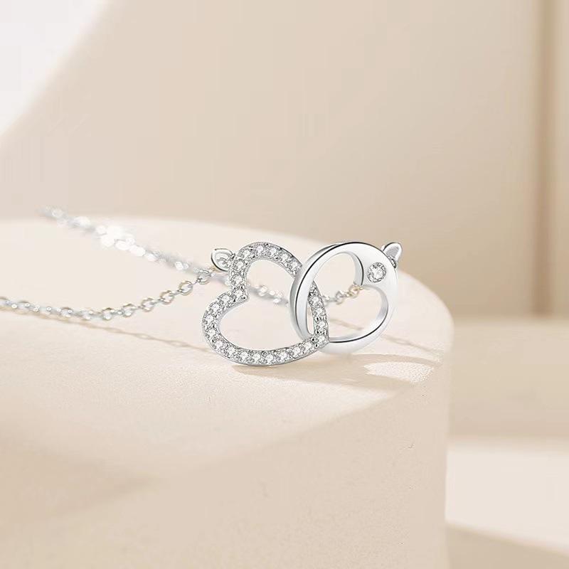 925แสนโรแมนติกของผู้หญิงสร้อยคอเงินสีโรสโกลด์หัวใจคู่สร้อยคอแบบเรียบง่ายออกแบบเฉพาะกลุ่มเครื่องประดับขายส่ง