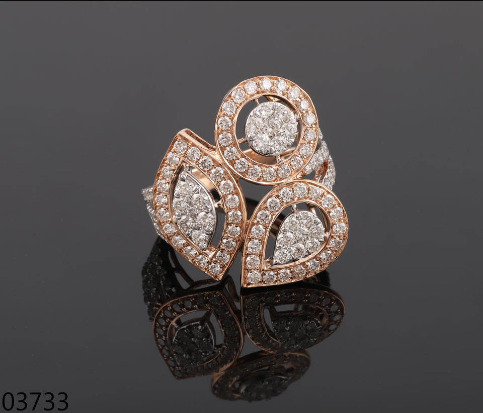 แหวนเพชรสำหรับผู้หญิงที่ปลูกในห้องปฏิบัติการสีโรสโกลด์พร้อมทรงกลมดีไซน์เกลียวสวยงามได้รับการรับรองของขวัญวันวาเลนไทน์