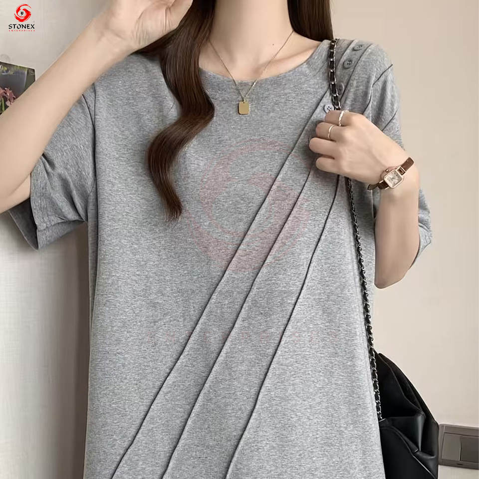 เสื้อยืดคอกลมโอเวอร์ไซส์สำหรับผู้หญิง ผ้าฝ้าย 100% ระบายอากาศได้ดี เป็นมิตรกับสิ่งแวดล้อม แขนสั้น ทรงบ็อกซี่ ทันสมัย