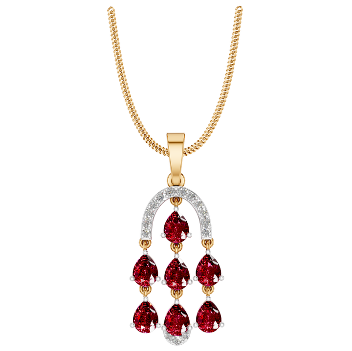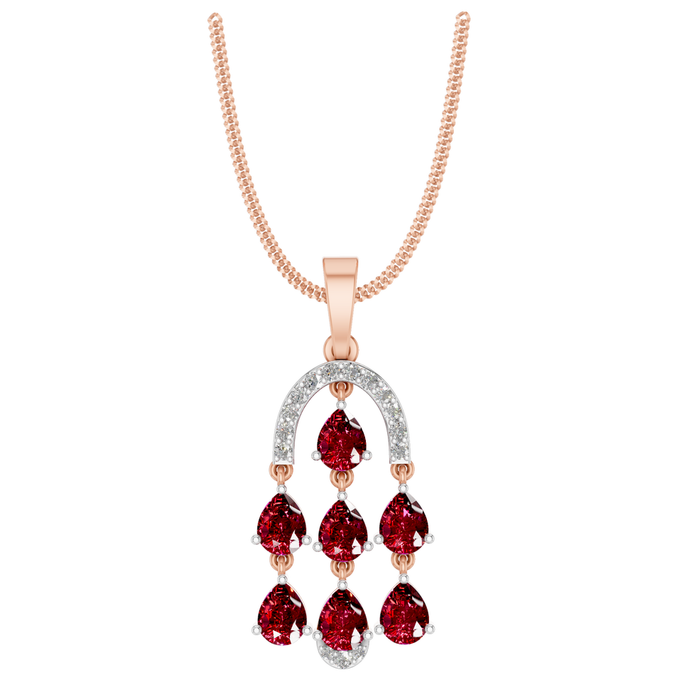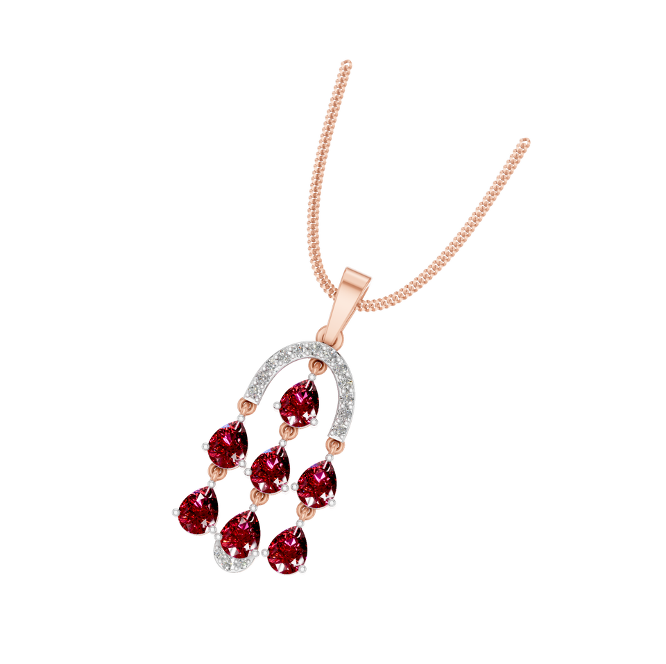 Style:Dangling Pendant with Pear-Shaped Rubies & Diamonds